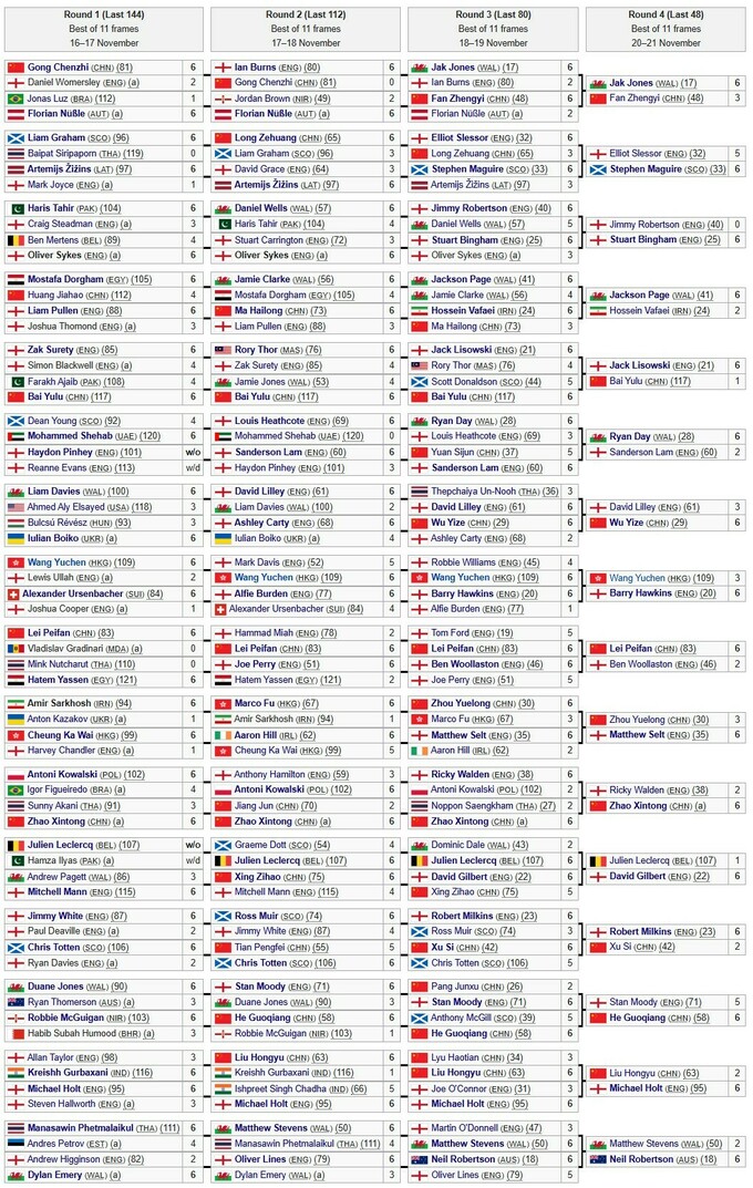 Квалификация состоялась с 16 по 21 ноября в английском Лестере, а основная часть турнира пройдет с 23 ноября по 1 декабря в английском городе Йорк.