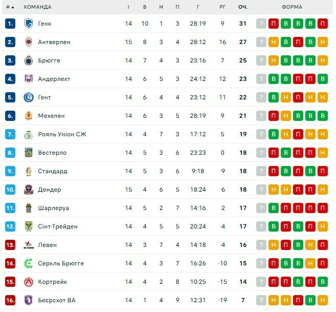 Вечером 22 ноября прошел стартовый матч 15-го тура чемпионата Бельгии.