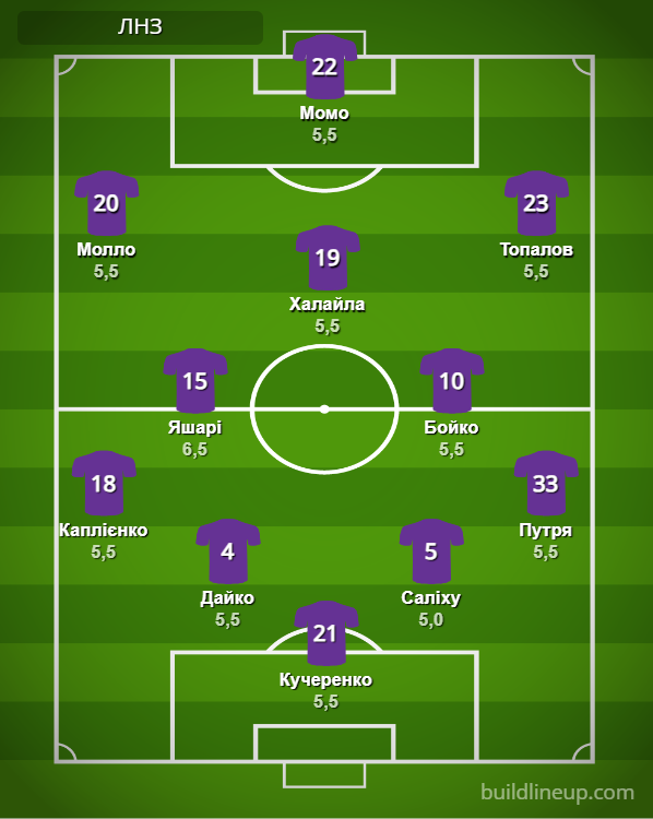 ЛНЗ: Кучеренко – Каплиенко, Дайко, Салиху, Путря – Яшари, Халайла (Тилль, 71), Бойко (Муравский, 75) – Молло (Эйнел, 71), Момо, Топалов (Г. Пасич, 46).