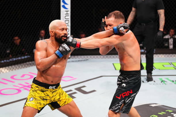 В главном поединке сошлись бразилец Дейвисон Фигейреду (24–3–1) и Петр Ян (17–5). Бой прошел в лимите легчайшего веса (до 61,2 кг).