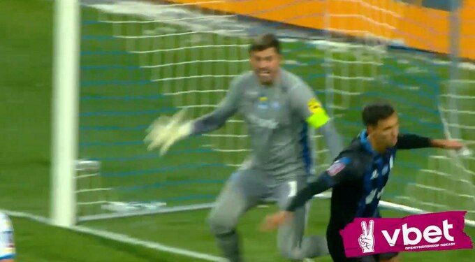 После пропущенного голкипер бело-синих Георгий Бущан, мягко говоря, расстроился. Он накричал на центрбека команды Тараса Михавко и пнул штангу.