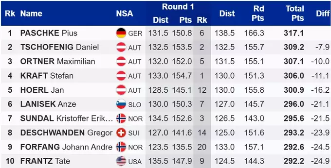 Первое место личного гонки завоевал представитель Германии Пьюс Пашке, для которого этот триумф стал вторым в рамках Кубка мира. Суммарно спортсмен набрал 317 баллов.