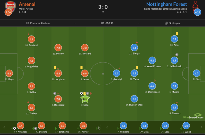 Оценки матча Арсенал – Ноттингем Форест от WhoScored