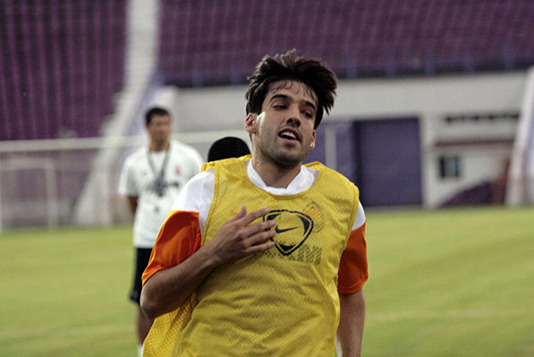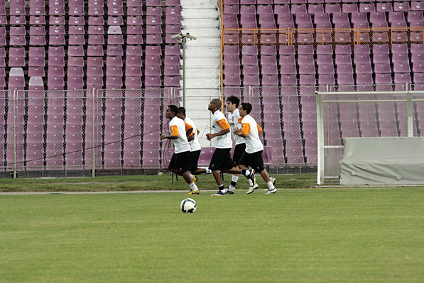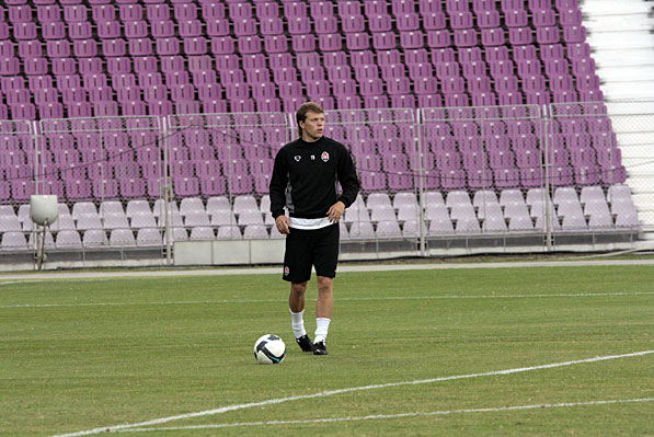 Впрочем кроме скользкого поля (весь день стояла неимоверная жара, но сразу после закрытия тренировки для прессы, пошел таки дождь) стоит обратить внимание и на то, что поле просто-напросто кривое, трава очень короткая и наполовину высохшая, а по всему явно заметны перепады уровня газона.