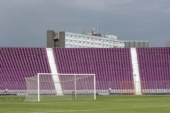 Что касается стадиона, то данное сооружение явно устарело морально. И хоть деревянные лавочки заменены на пластиковые сиденья, выглядят они не шибко презентабельно, а опоры, на которых сиденья крепятся давно проржавели. Удивило и невероятно огромное расстояние от трибун, которые к слову, огорожены металлическими решетками, до поля. По оценкам украинских журналистов там около 30 метров! Впрочем внутри чаша выглядит еще более менее, а вот снаружи - лучше не видеть :)