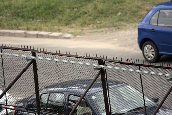 Удобно, однако... Весь стадион окружен подобным забором с металлическими штырями