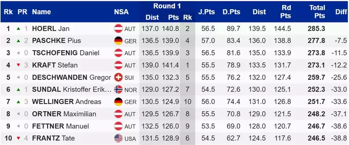 Победителем турнира стал австриец Ян Хёрль, набравший 285.3 балла. За ним расположился победитель предыдущего соревнования Пьюс Пашке.