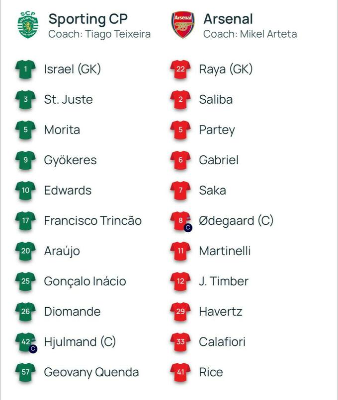 Жоау Перейра (наставник лиссабонцев) и Микель Артета (коуч лондонцев) объявили стартовые составы.