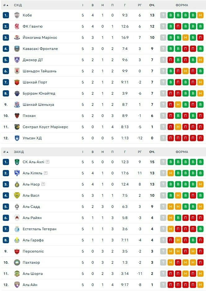 Аль-Ахли выиграл все матчи (15 очков из 15) и возглавляет турнирную таблицу Западной зоны, далее идут Аль-Хиляль и Аль-Наср (по 13).