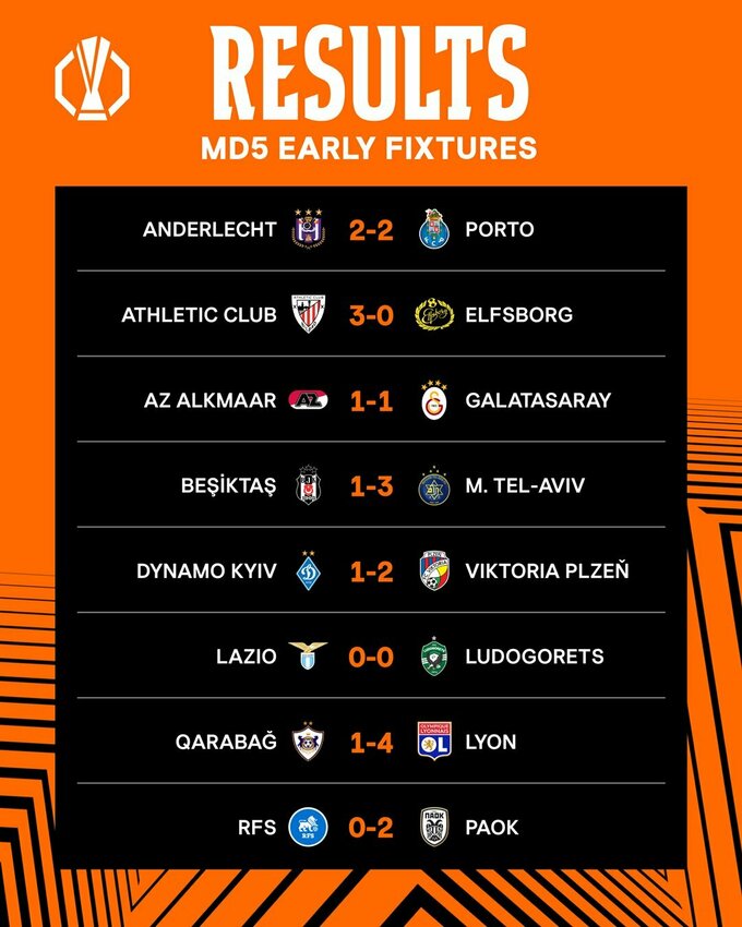 Вечером 28 ноября проходят поединки 5-го тура Лиги Европы.