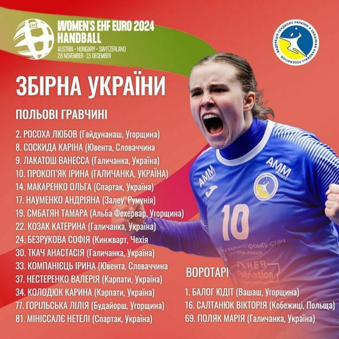 Состав сборной Украины на женский ЧЕ-2024 по гандболу
