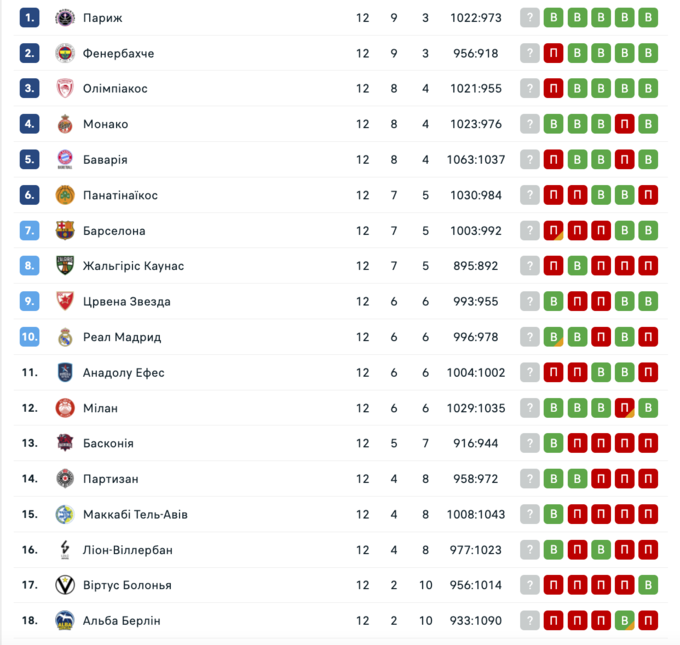 29 ноября были сыграны 4 матча 12-го тура баскетбольной Евролиги.