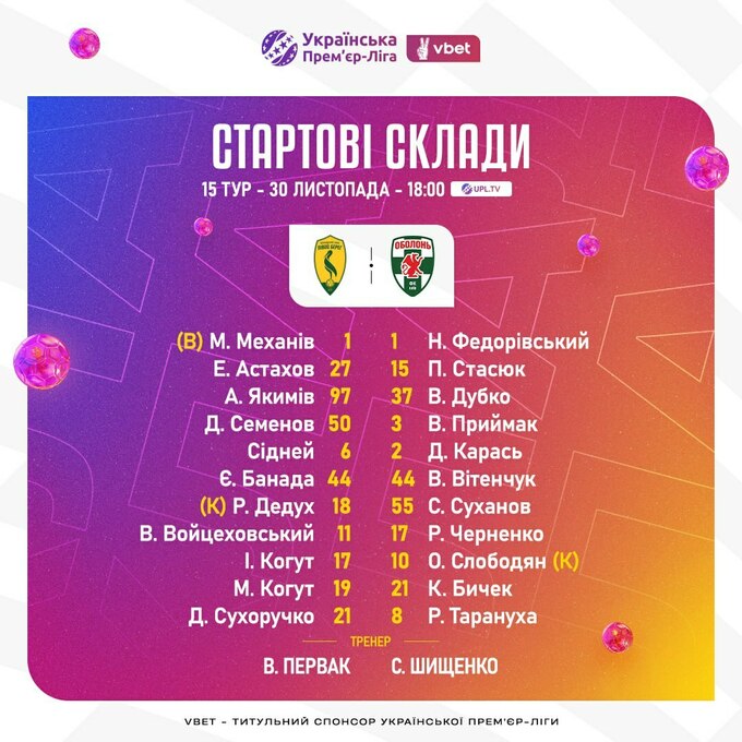 Левый Берег – Оболонь. Стали известны стартовые составы на матч