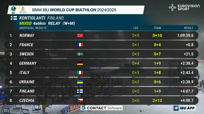 30 ноября в Контиолахти состоялась смешанная эстафета на Кубка мира по биатлону.