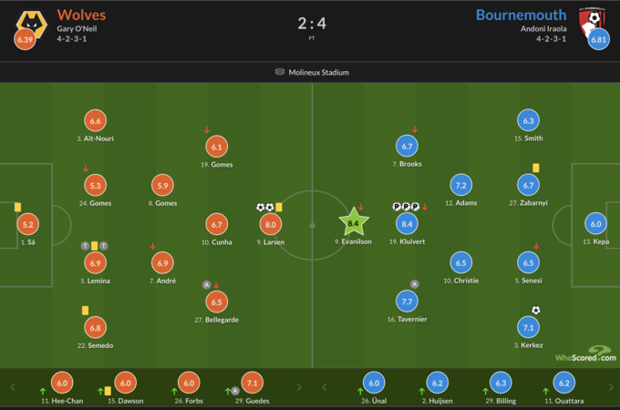 «Борнмут» победил «Вулверхэмптон» со счетом 4:2