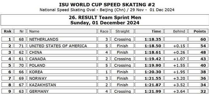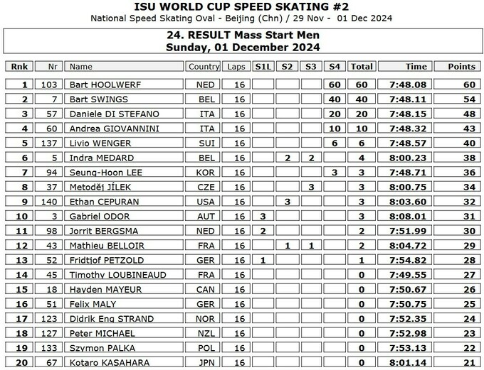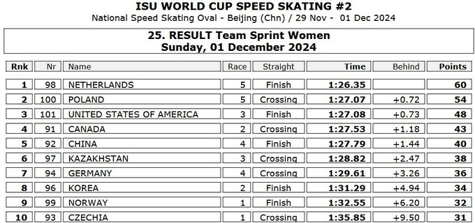 Сегодня, 1 декабря, завершился второй этап Кубка мира 2024/25 по конькобежному спорту, которой проходил на Национальном конькобежном овале в китайском Пекине.