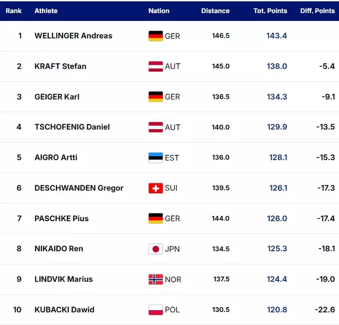Прыжки с трамплина. Неудачное выступление Пашке, Веллингер на вершине