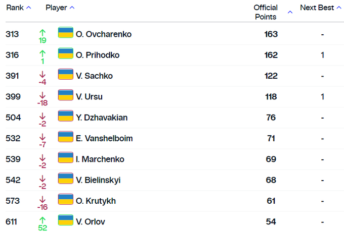 А вот первой ракеткой Украины снова стал Александр Овчаренко. Он во второй раз в карьере поднялся на вершину украинского тенниса.