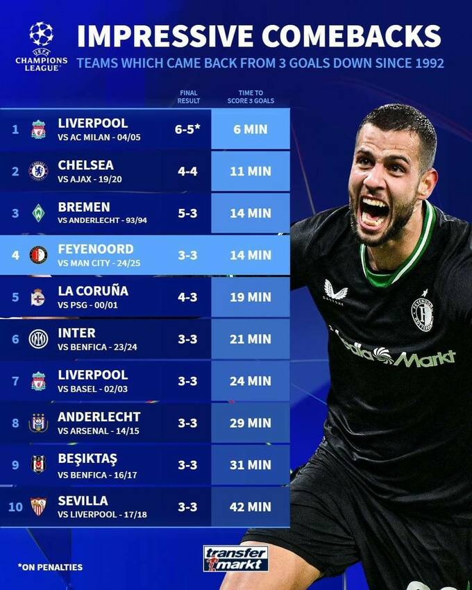 Самые впечатляющие камбеки в истории Лиги чемпионов (по версии Transfermarkt)