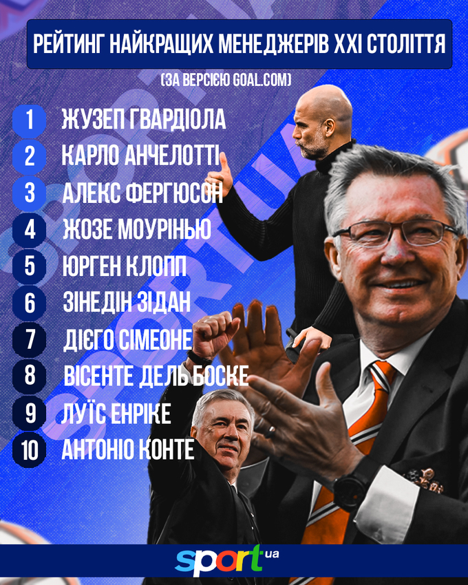 Известный британский портал GOAL обнародовал рейтинг лучших футбольных тренеров в XXI веке.