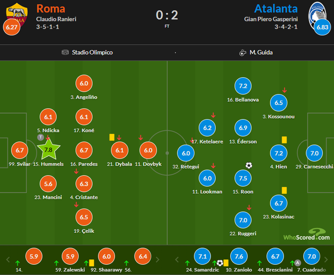 Оценки WhoScored за матч Рома – Аталанта (0:2)