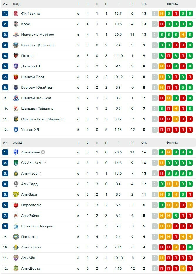 Аль-Хиляль набрал 16 очков из 18 и возглавил турнирную таблицу Западной зоны, далее идут Аль-Ахли (16) и Аль-Наср (13).