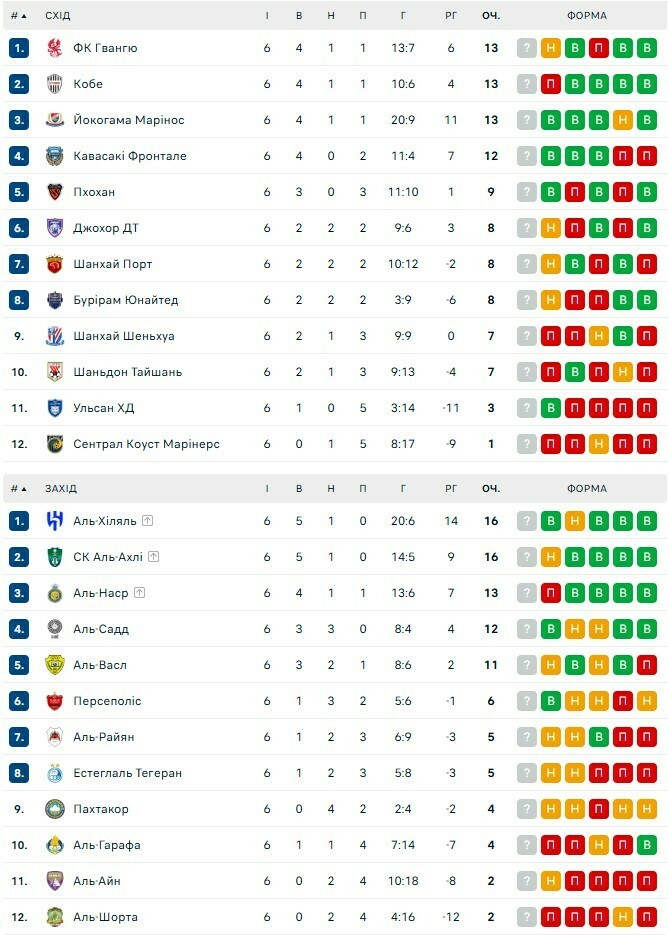 Саудовские команды Аль-Хиляль и Аль-Ахли набрали по 16 очков из 18 и возглавляют Западную зону.