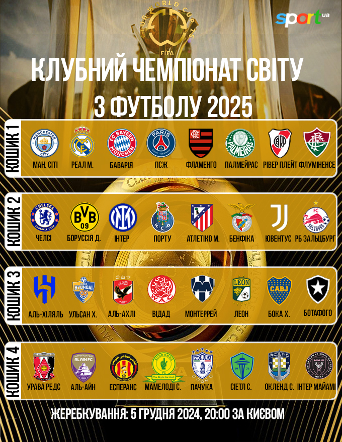 5 декабря 2024 года в 20:00 по киевскому времени в Майами (штат Флорида, США) состоится жеребьевка Клубного чемпионата мира 2025 по футболу.
