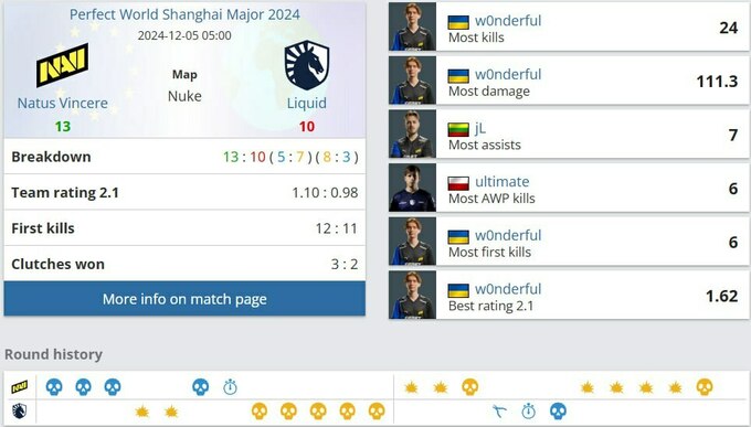 Старт второй половины был почти идентичен первой, три раунда от NAVI и ответ таким же количеством от Liquid, что позволило им вернуть утраченные два раунда.