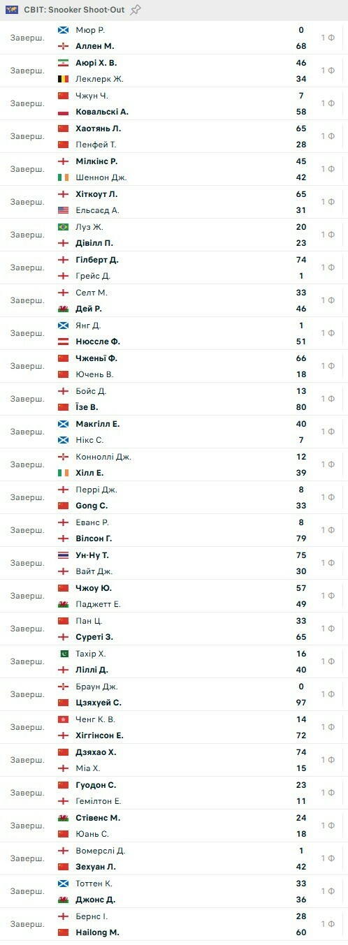 В первый день турнира выиграли свои матчи известные снукеристы Марк Аллен, Энтони Макгилл, Дэвид Гилберт.