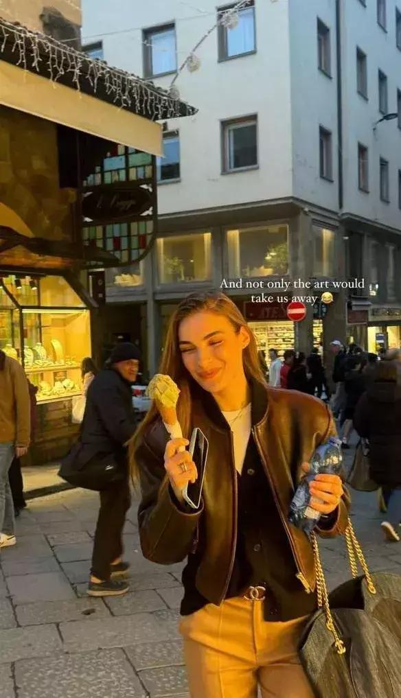 В то время, как Виктор залечивает очередную травму, жена футболиста гуляет улицами одного их самых красивых городов мира, наслаждается его архитектурой и посещает художественные музеи, где оценивает работы мировых художников.