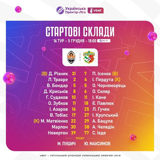 Шахтер: Ризнык, Винисиус Тобиас, Бондарь, Матвиенко, Азаров, Марлон, Крыськив, Судаков, Зубков, Невертон, Траоре