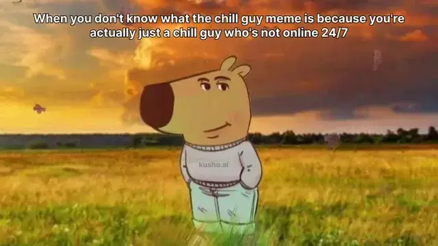 Перевод: когда не знаешь о меме Chill guy, потому что ты просто Chill guy, который не всегда онлайн 24/7