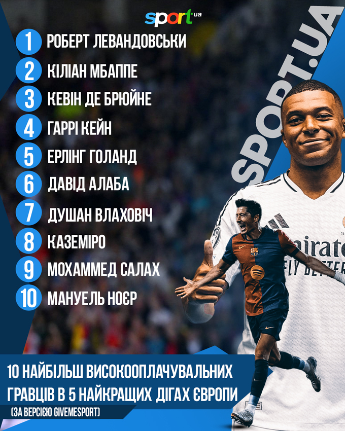 Популярное интернет-издание GiveMeSport опубликовало рейтинг из 20 самых высокооплачиваемых футболистов топ-5 европейских лиг.