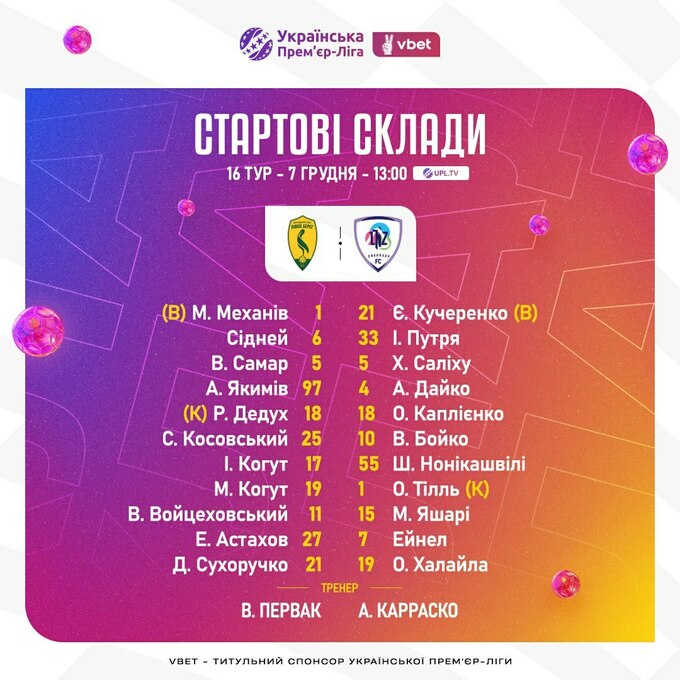 В субботу, 7 декабря, в 13:00 состоится матч 16-го тура Украинской Премьер-лиги.