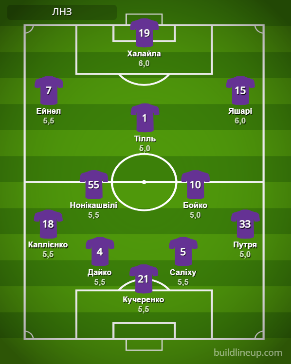 ЛНЗ: Кучеренко – Каплиенко (Г. Пасич, 73), Дайко, Салиху, Путря – Ноникашвили, Тилль, Бойко (Олейник, 62) – Эйнел (Авагимян, 62), Халайла (Момо, 74), Яшари.