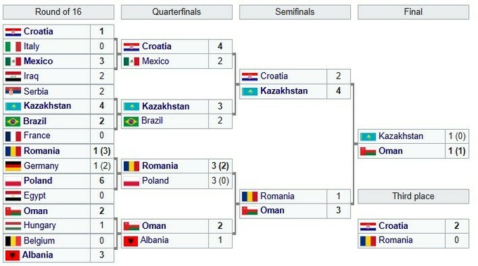 В полуфинале Казахстан обыграл Хорватию (4:2), а Оман взял верх над Румынией (3:1).