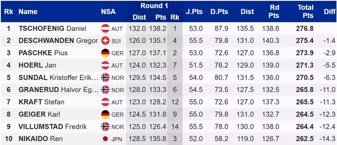 Первую победу в карьере на КМ одержал Даниэль Чофениг из Австрии. Прыгун оказался на первой строчке, набрав 276.8 очков.