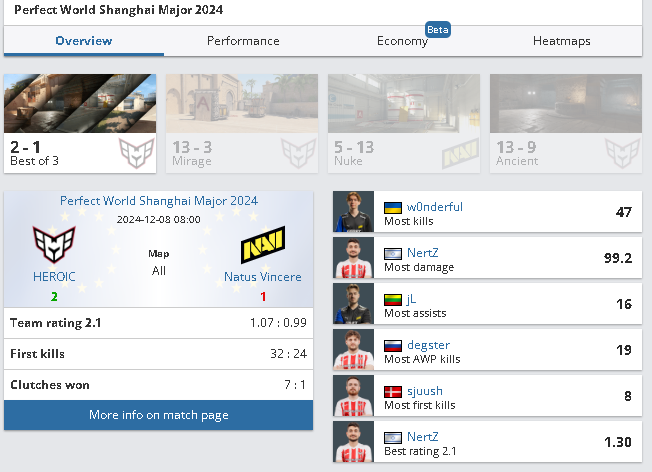 Сегодня, 8 декабря, состоялся решающий матч для Natus Vincere. В серии Bo3 украинский клуб уступил команде HEROIC со счётом 1:2 и завершил своё выступление на Shanghai Major.