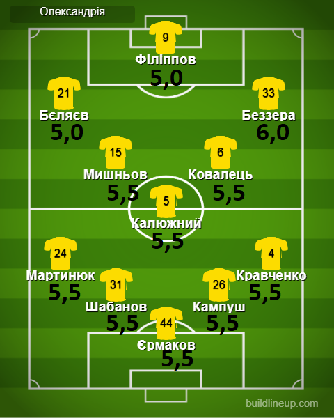 Замены Александрии: Козак – 5,5, Ващенко – 5,5, Шостак – 5,5, Кулаков – 5,0, Скорко – без оценки