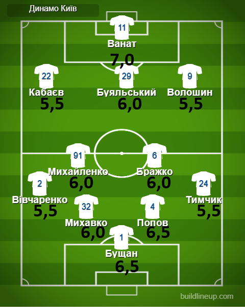 «Динамо»: Бущан, Вивчаренко, Попов, Михавко (Дячук, 83), Тымчик, Михайленко, Бражко, Волошин (Караваев, 72), Кабаев (Дубинчак, 79), Буяльский ( Рубчинский, 83), Ванат (Герреро, 72)