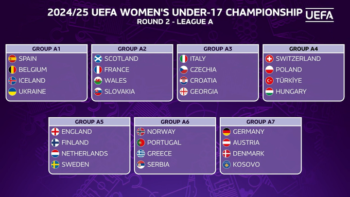 Состоялась жеребьевка второго раунда отбора чемпионата Европы 2025 WU-17, определившая состав групп обеих лиг.