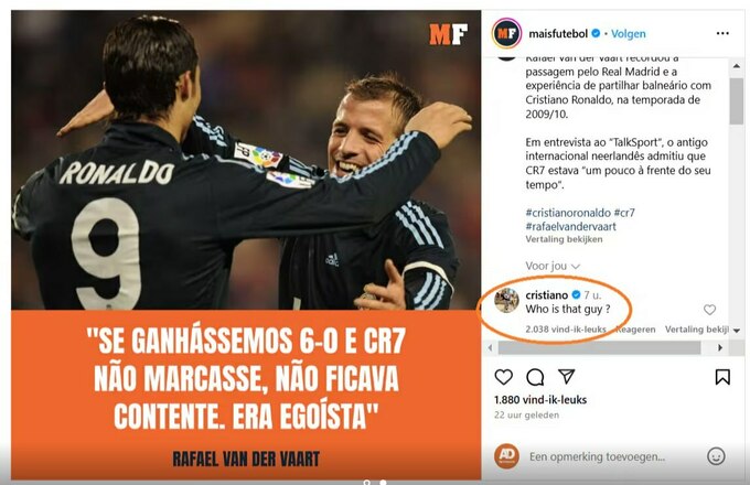 Криштиану увидел слова ван дер Варта только в одном из пабликов в сети Instagram, оставив под соответствующей публикацией комментарий: «Кто этот парень?».