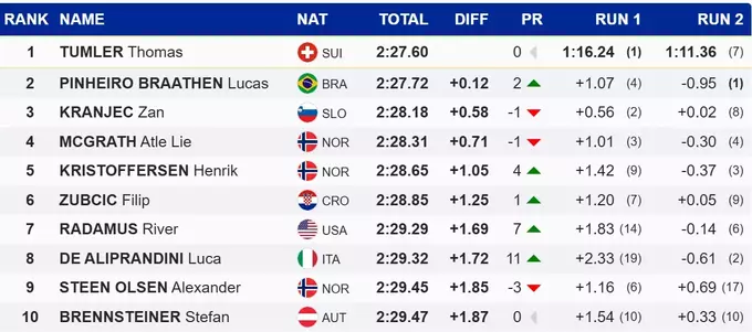 Второе место занял Лукас Бротен, ставший первым бразильцем, взошедшим на подиум КМ. Третий – Жан Краньец из Словении.