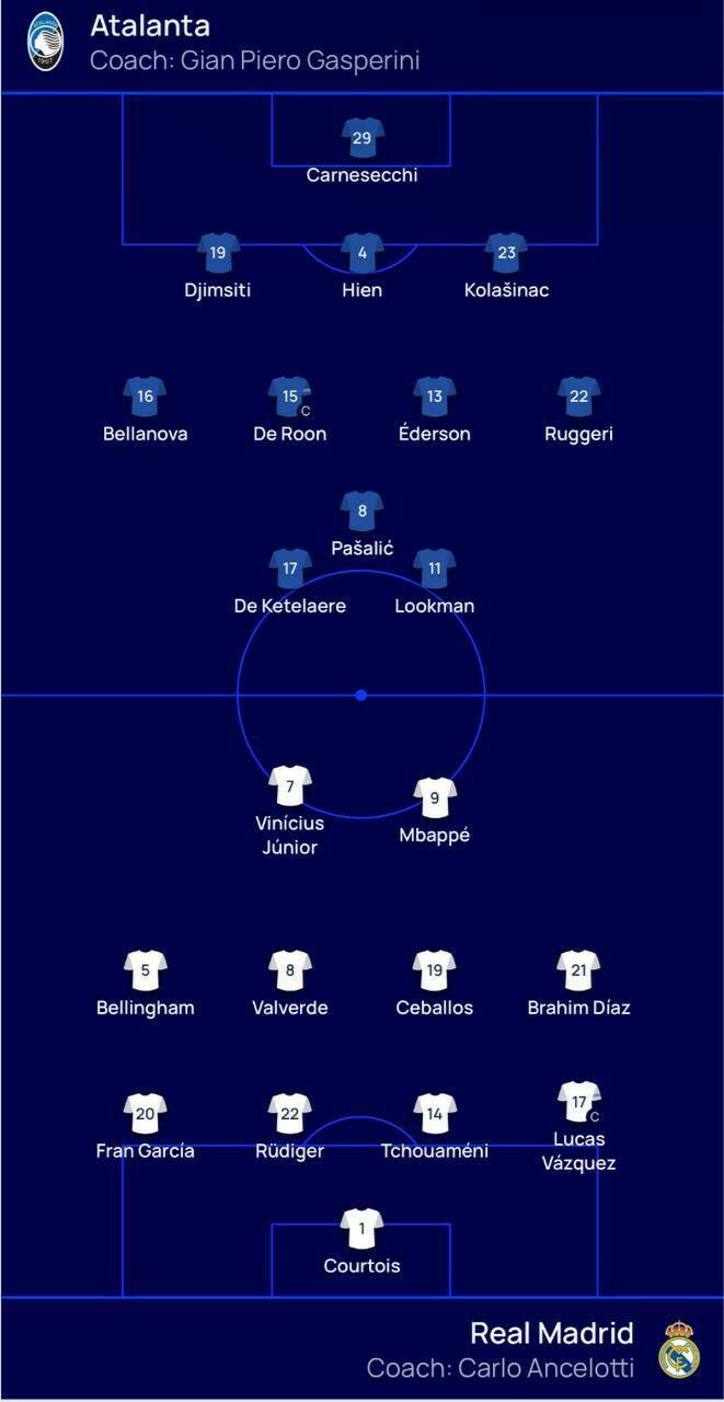 Карло Анчелотти (наставник мадридцев) и Джан Пьеро Гасперини (наставник бергамасков) объявили стартовый состав.