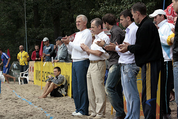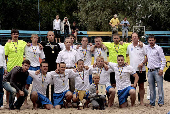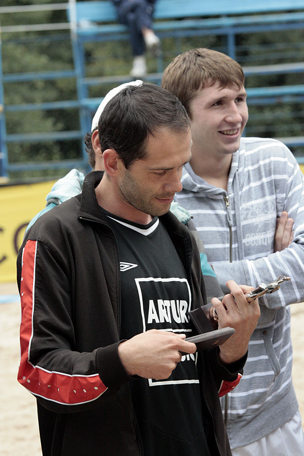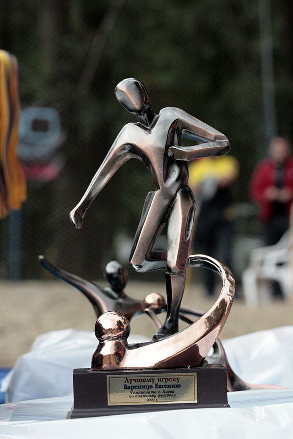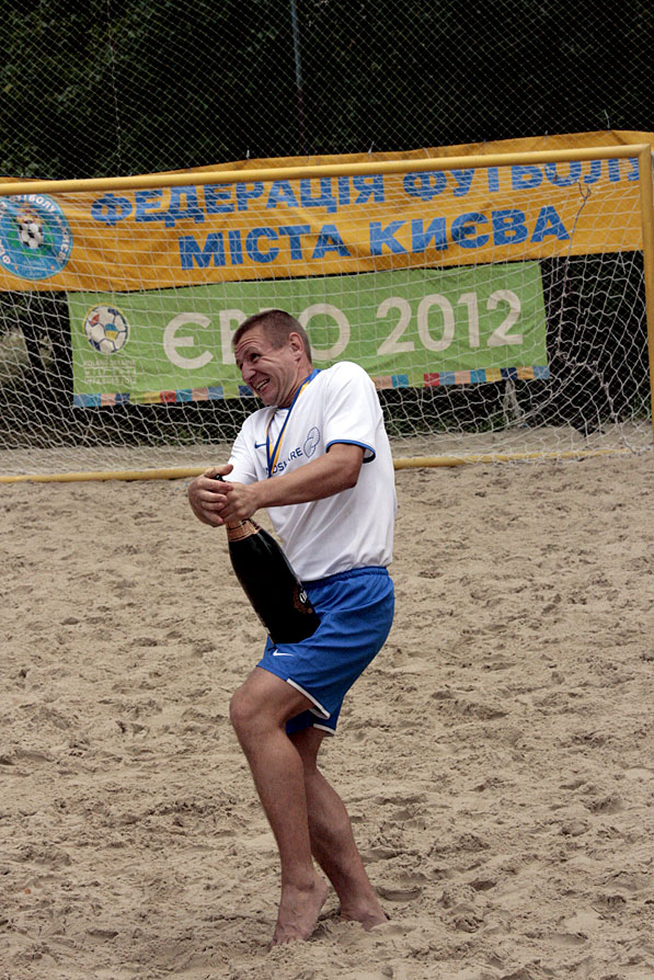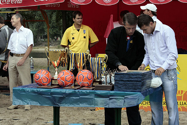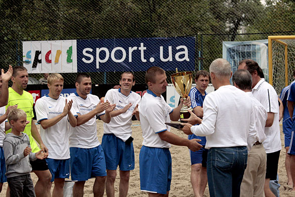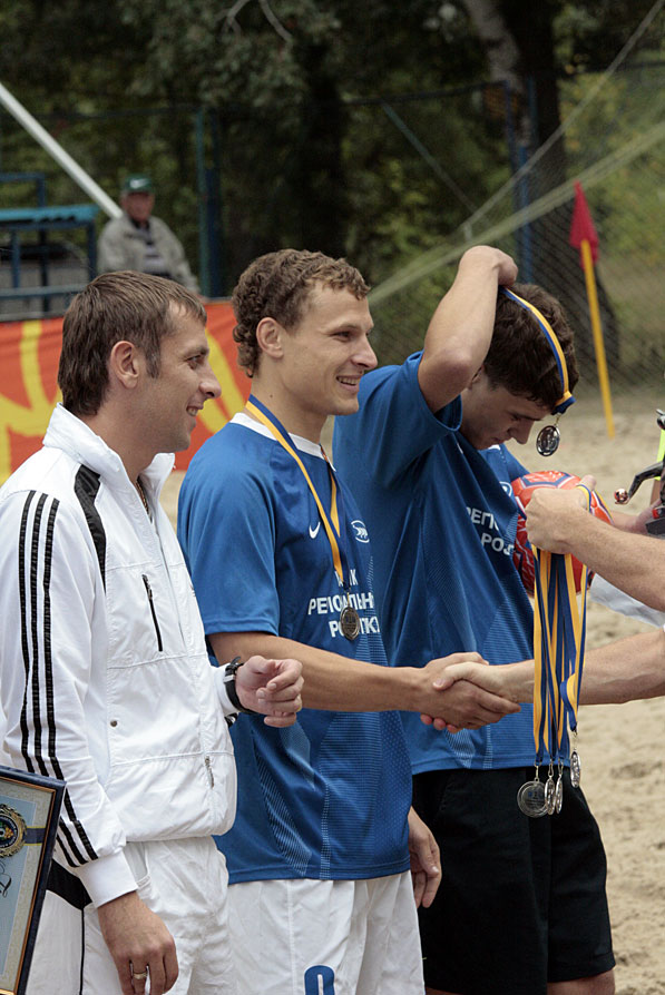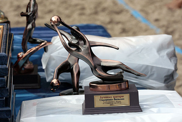 Президент футбольного клуба «Банк регионального развития» Валерий Ксензенко получает награду за вклад в развитие пляжного футбола