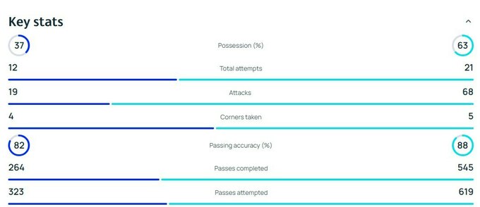 Согласно официальной статистике УЕФА, мюнхенский клуб полностью контролировал ситуацию на футбольном поле и имел внушительный перевес по ключевым показателям.