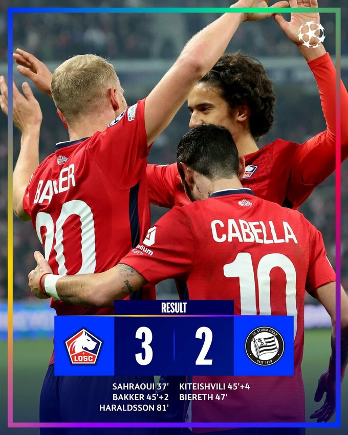 Голевая перестрелка. Лилль одолел Штурм и вошел в топ-6 Лиги чемпионов