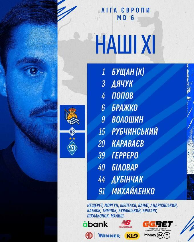Шовковский назвал состав Динамо на матч Лиги Европы против Реала Сосьедад
