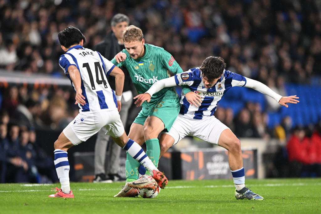 Киевское «Динамо» в поединке 6-го тура основного раунда Лиги Европы встретилось с «Реал Сосьедадом». Для «бело-синих» нынешний евросезон складывается провально: ноль очков и последнее место в турнирной таблице. В предыдущем матче с «Викторией» киевляне наконец сумели забить свой первый гол в основном раунде, но это их не уберегло от очередного поражения. Немудрено, что в такой ситуации тренерский штаб Александра Шовковского демонстрирует нацеленность, в первую очередь, на достижение результата в УПЛ. Там у «Динамо» все идет по плану, ведь команда лидирует и борется за чемпионство.